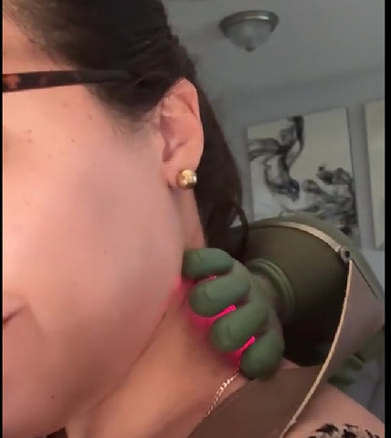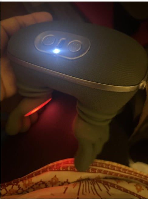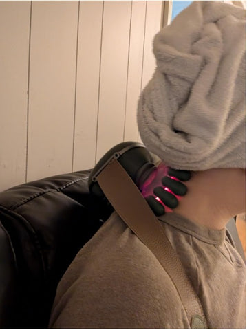 The red light penetrates muscles to relax them, improve circulation, and increase the massage's benefits.